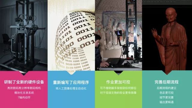 第二,改进设备,例如图像处理软件。这大大提高了我们的工作效率,比如说我们在做332窟时,需要15个人力,但改进后只需要4个人就可以完成。