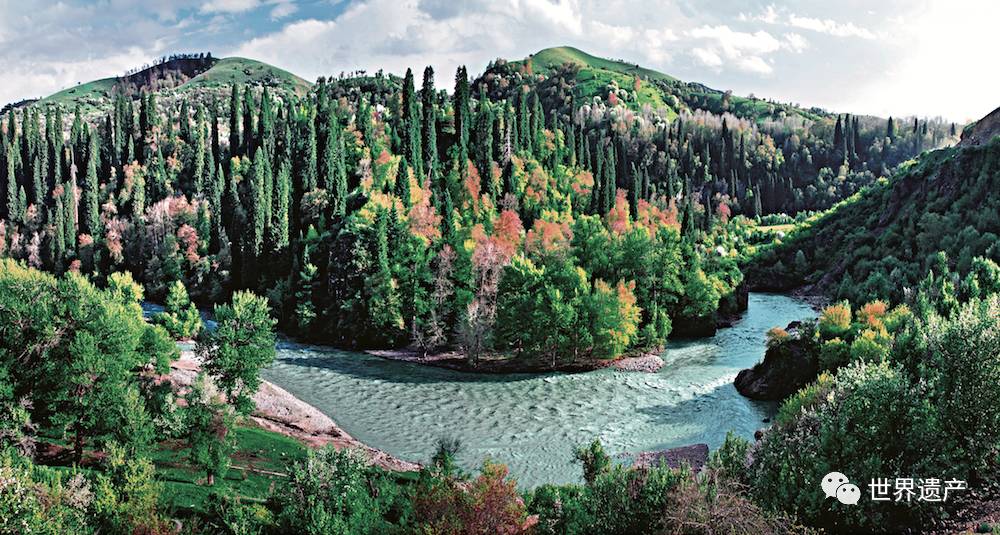 标准IX:至少从上新世以来,遗产地深处内陆的地理区位和温带干旱大陆性气候,较之世界其他区域,更好地保存和展示了温带干旱区大山脉的地貌、生态、生物和景观特征。遗产地拥有温带干旱区典型的山地垂直自然带谱,突出代表了温带干旱区山地生态系统的空间分布特征和演变规律,成为研究全球气候变化干旱区山地生态系统生物演替的杰出范例。遗产地是中亚山地众多珍稀濒危物种、特有种的最重要的栖息地,突出代表了这一区域由暖湿植物区系逐步被现代旱生的地中海植物区系所替代的生物进化过程。