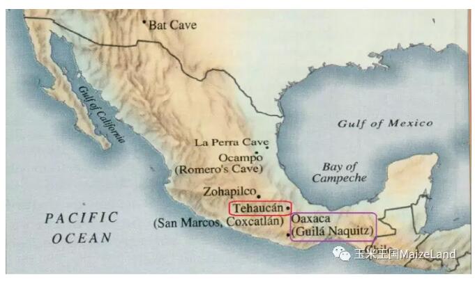 图四、出土玉米大植物遗存的Tehuancan山谷和Oaxaca地区