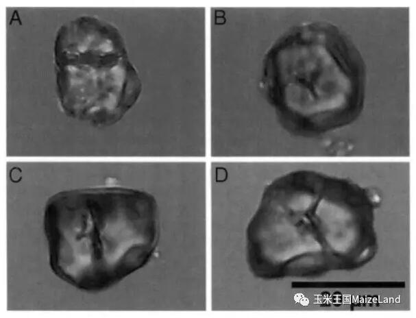 虽然玉米大植物遗存的发现可以为我们提供诸多形态特征方面的细节,也可以用来直接测年,但毕竟最早玉米的发现距离之前基因考古研究得出的驯化时间都晚了接近三千年。这巨大的时间鸿沟在一些学者眼中,可以通过微植物遗存的发现来填补。玉米的微植物遗存研究对象主要包括玉米遗存中无法用肉眼观测到的植物植硅体和淀粉粒。