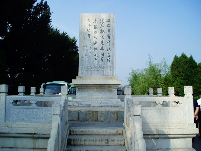 1963年国家副本席董必武同志来呼和浩特市考察并谒昭君墓,留下不朽之作:“昭君自有千秋在,胡汉和亲识见高。词客各抒胸臆懑,舞文弄墨总徒劳。”排斥众议,一斧定音。讲出了昭君所代表的中华同呼吸、共命运、心连心的真谛。原来,昭君墓周围杨柳参天、地上杂草丛生,残砖烂瓦比比皆是,有时候还能找到蓝色的、绿色的琉璃瓦块。这说明昭君墓附近历史上曾有建筑,《金史·列传第九·斡鲁》载:“辽主留辎重于青冢,领兵一万往应州。……宗望奄至辽主营(青冢主营)尽俘其妻、子、宗族,得其传国玺。”《金史·列传第十二·宗望》也载:“太祖已定燕京,斡鲁为都统,宗望副之,袭辽主于阴山、青冢之间。”“将至青冢,遇泥泞,众不能进。”“时辽主往应州,其嫔御诸女见敌兵奄至惊骇欲奔,命骑下执之。有倾,后军至。辽太叔胡卢瓦妃、国王捏里次妃、辽汉夫人,并妻子秦王、许王,女骨欲、余里衍、斡里衍、大奥野、次奥野,赵王妃斡里衍、招讨迪六、详稳六斤,节度使孛迭、赤狗儿皆降。得车万余乘,惟梁王雅里及其长女乘军乱亡去。”又《辽史·天祚皇帝三》载:“大宝三年四月戊戌,金兵困辎重于青冢硬寨,太保持母哥窃梁王雅里以遁,秦王、诸妃、公主、丛臣皆陷没。”另《元史·木华黎传》记:“秋八月,从驻青冢,监国公主(成吉思汗三女儿阿拉海别乞)遣使来劳,大飨将士,山东胜渡河西。”