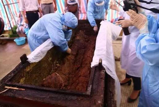 中国丝绸博物馆的同行在清理棺内出土衣物
