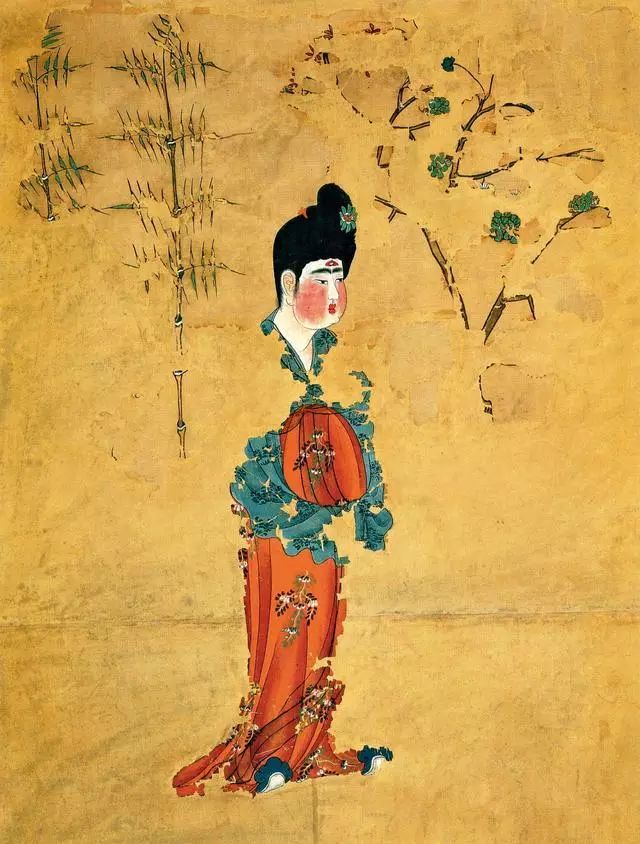唐 树下仕女图绢画 新疆维吾尔自治区博物馆藏