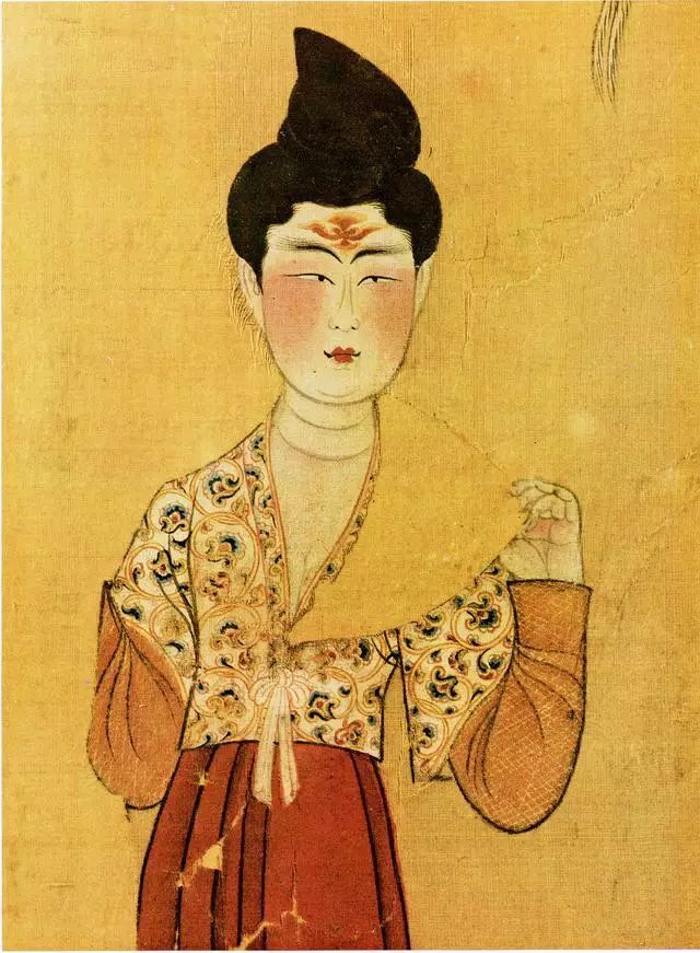 自南北朝时期,由于受到了胡服的影响,汉锦风格中表现的胡汉交融日趋明显。陕西扶风法门寺地宫出土文物中就有一件蹙金绣小半臂,可见紧身小巧的半臂悄然流行于隋唐时期。但随着社会风潮的不断变迁,至晚唐五代时期,宽袍大袖的汉风再度流行,便出现了大鬓峨髻与大袖襦裙的女装风格。