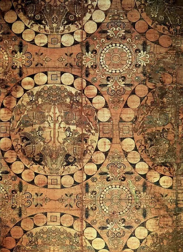 唐 四骑狮子狩文锦 日本奈良法隆寺藏