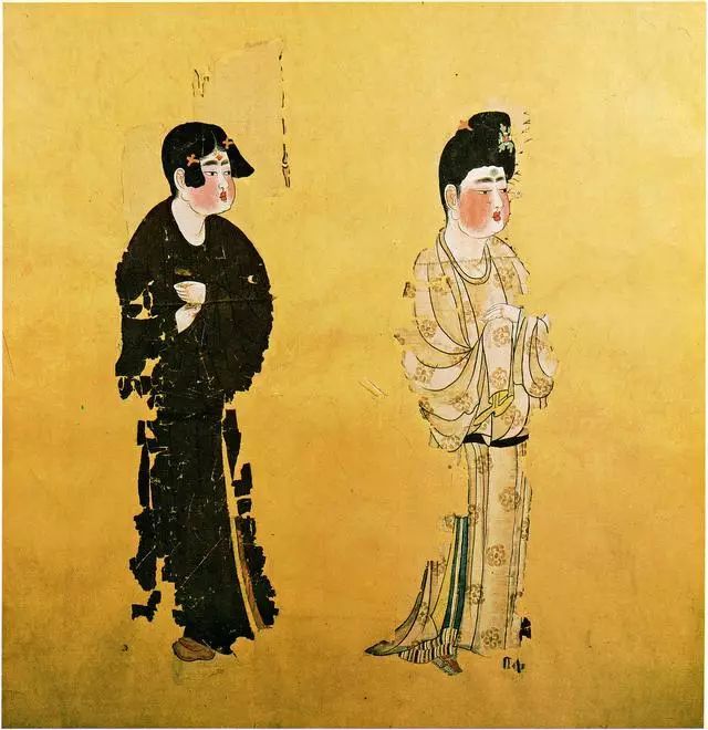 敦煌藏经洞出土卷轴绘画,主要集中在公元8世纪晚期至11世纪。此时的中国正值晚唐至北宋初年。在我国现存服饰文物形象中,实物较为稀少、形式也较为模糊的即是晚唐五代时期风格,传统的褒衣博带样式服饰在此时与胡服交融,形制逐渐向宽袖长裙样式发展。