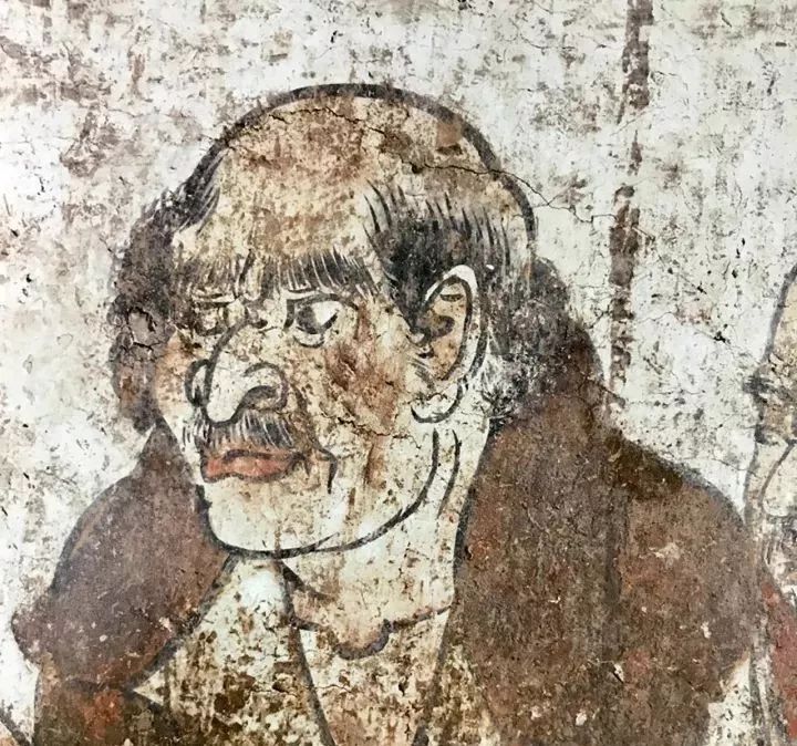 例如画中3位外来使节,左边一位目光焦虑,忐忑不安;中间一位双手拢于袖中,谦和恭敬;最后那位远远地站着,眼神中流露出谦卑和胆怯。