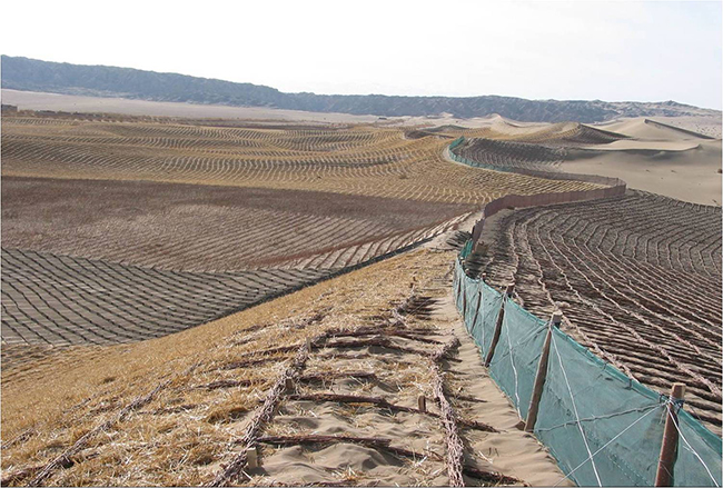 工程治沙实验(草方格、高立式沙障、棉花杆卧式沙障)