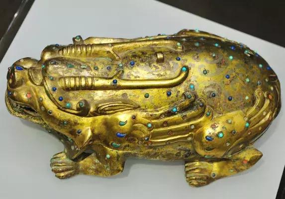 东汉鎏金镶嵌兽形铜盒砚