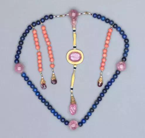 隋代,著名的“李小孩”李静训墓出土的宝石项链上就镶嵌了漂亮的青金石作为装饰。