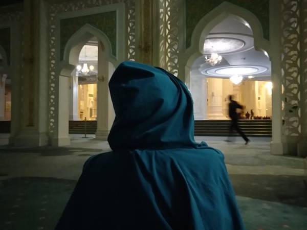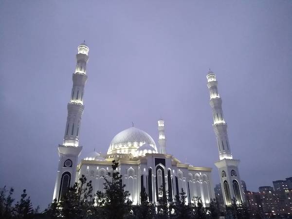 哈兹拉特苏丹清真寺位于伊希姆河左岸,与许多清真寺不同的是,这里向女性开放,入口处还有专为女性访客准备的长袍。