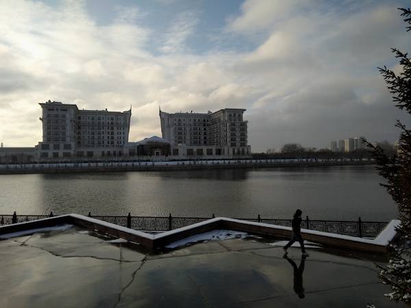 在激烈竞争中胜出的黑川纪章担任了这座新生之城的规划重任,将阿斯塔纳沿伊希姆河分为左岸和右岸,如同塞纳河之于巴黎,又造人工林与博罗沃耶的自然森林相接。眼前长约1.7公里的中轴线两侧,一座座或魔幻、或摩登、或中式、或后现代的奇异建筑耸立在周围亘古不变的荒原上,衬着不远处一马平川的天际线,使得这座年轻的城市带有一种说不出的荒诞感。