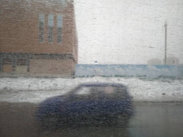 大雪中疾驰过阿斯塔纳共和大道,覆雪的车窗外,街景仿佛一幅俄罗斯油画