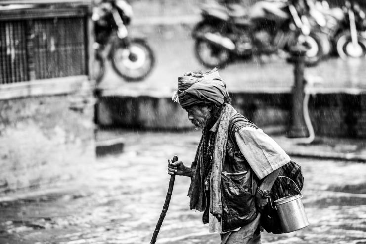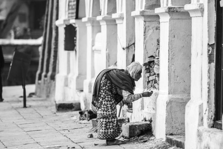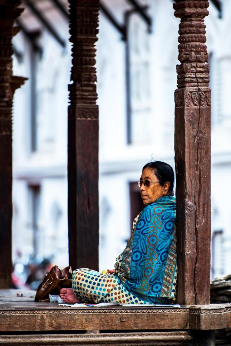 一个老妇人独自发呆,到尼泊尔之前,所有的攻略上都写着:一定要到杜巴广场的神塔台阶上坐一坐,喝一杯浓郁的尼泊尔奶茶,静静地发呆。而这更多的是当地人的一种生活方式。