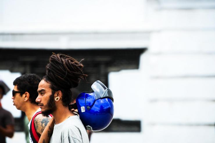 加德满都的杜巴广场街头,酷炫发型的年轻小伙。