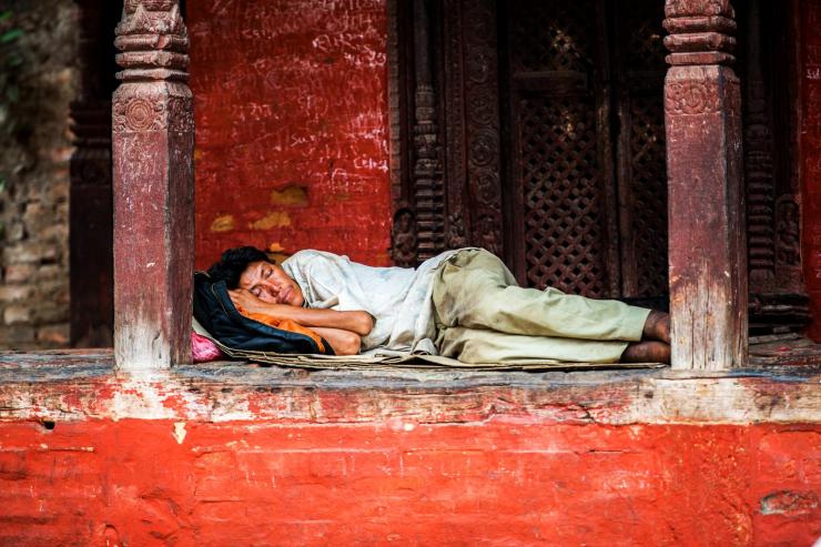 加德满都的杜巴广场一角,流浪者在午休。
