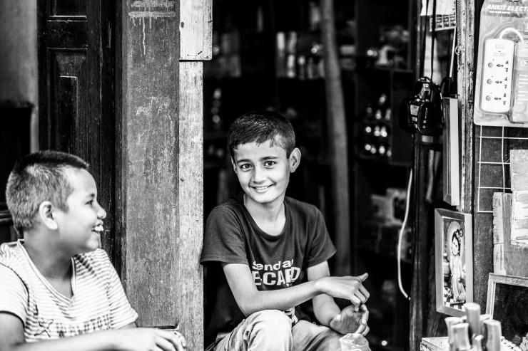 小男孩替大人照看着自己家的杂货店,和小伙伴有说有笑,当我把镜头对准他的时候,露出了腼腆的笑容。