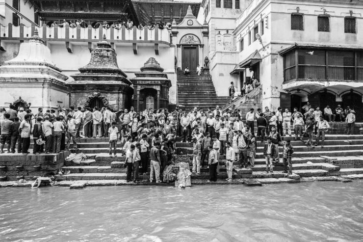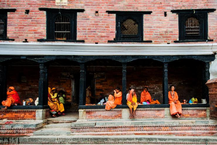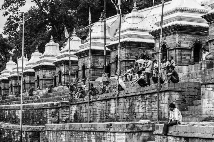 加德满都烧尸庙-一群妇女在这里发呆、喝下午茶。
