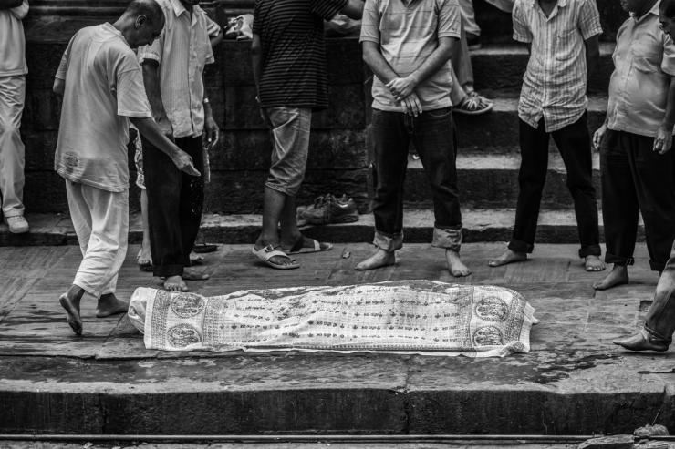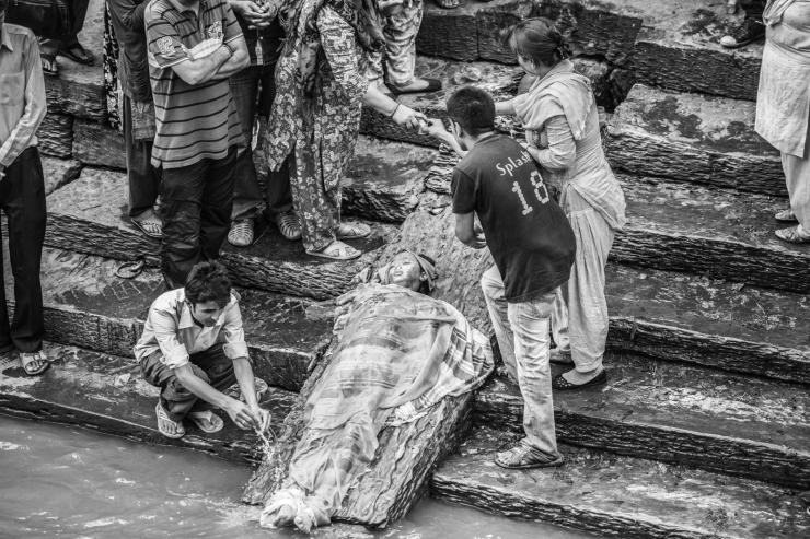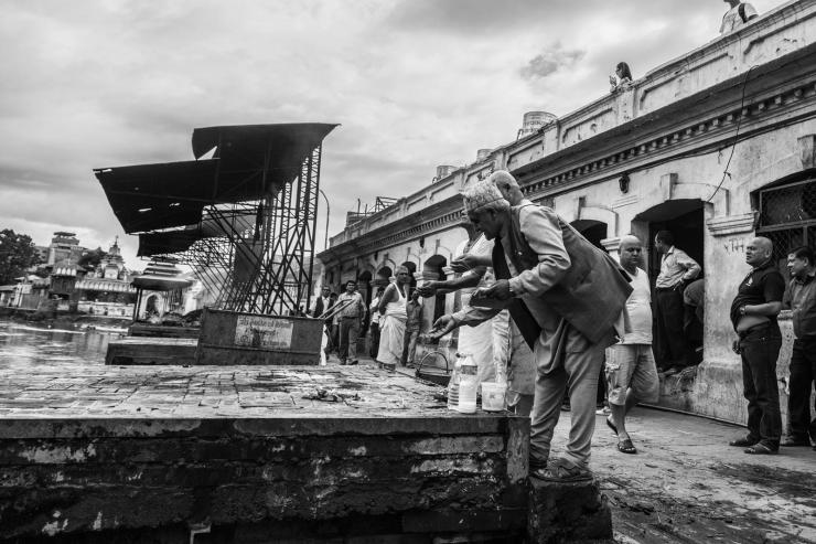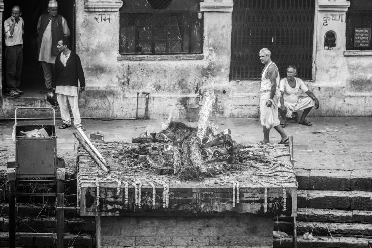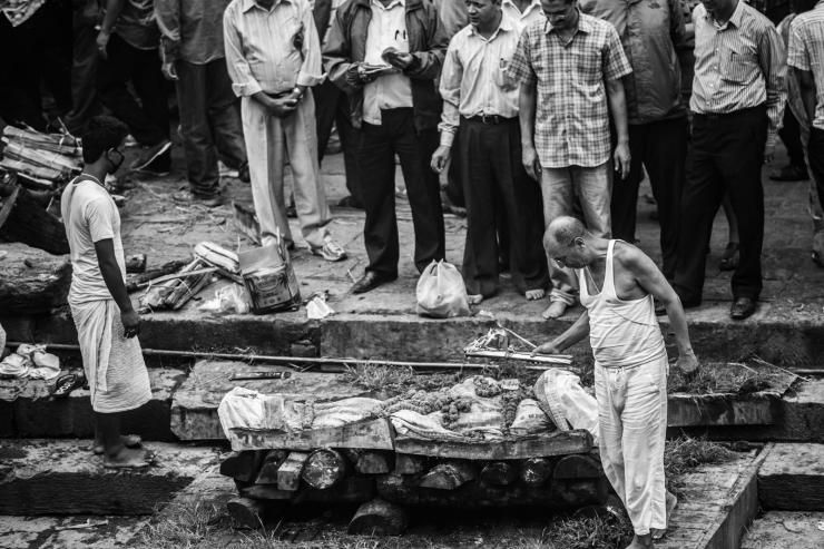 每一具尸体被烧之前都要在这里进行一系列的仪式,接受亲友最后的悼念。这位小女孩出意外离开,从亲友的阵容来看,应该是当地的大户人家。
