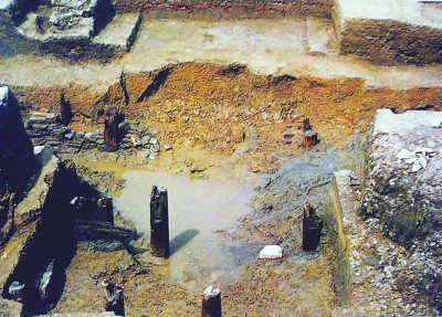 南京市大行宫工地清理的六朝早期木桥桥桩