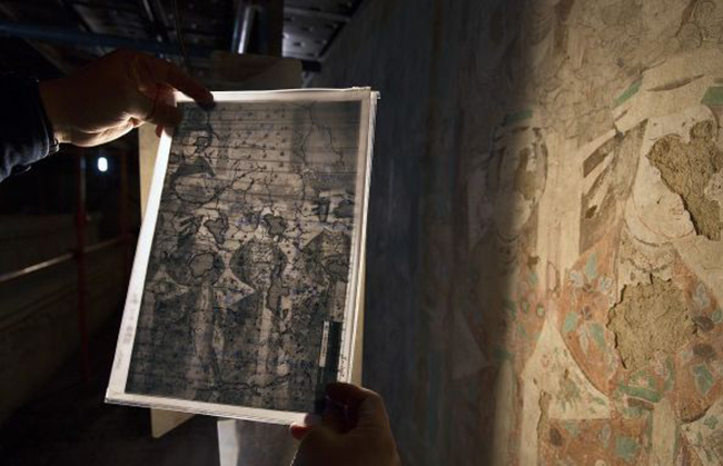 苏伯民介绍,借助现代科技手段还能够对洞窟内温度、湿度以及微生物环境进行实时监控。结合监控数据和无损检测数据,即可制定出可行的壁画保护方案。他告诉记者,通常有两种方式对壁画进行保护,一是通过控制外部条件来减少侵害,使壁画状态保持稳定;二是采取修复方法,去除壁画表面的微生物污染,降低再生病害的几率,使病害状态不再发展。