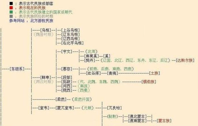 鲜卑族留居北方大兴安岭地带的室韦部落直接形成了今天的蒙古,而居于辽河上游的鲜卑则以契丹为号。由东胡—鲜卑—室韦—蒙古的民族发展序列基本可信。