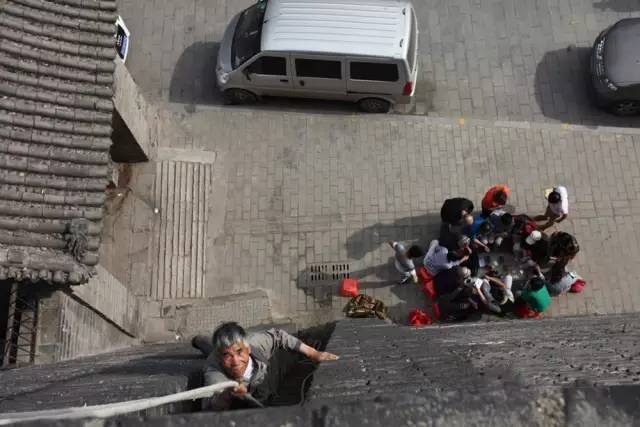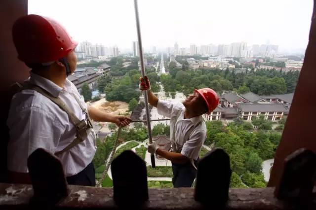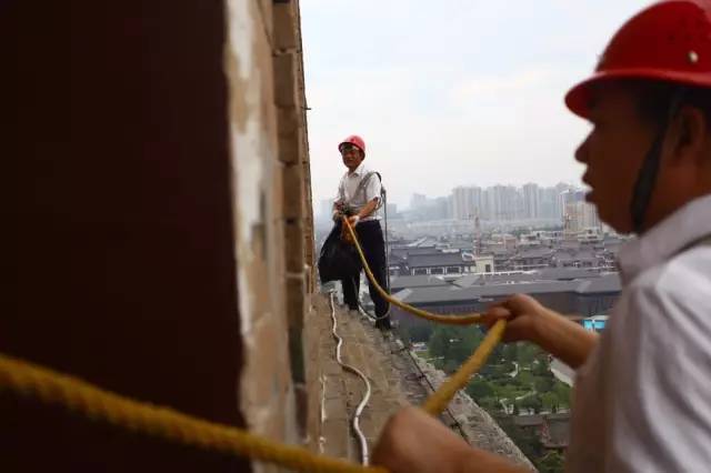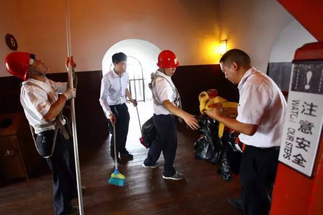 其他人分别负责塔外辅助、塔内拽着安全绳、