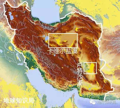 首先是横躺在北部的卡维尔盐漠,总面积77600平方公里,跟重庆市差不多大。西起厄尔布尔士山脉,东至阿富汗境内。卡维尔盐漠,顾名思义,覆盖着一层厚厚的淤泥盐层,像沼泽一样,走着走着就会陷进去。而另一个是东南处的卢特沙漠,是伊朗最大的沙漠盆地。这些地方都不宜生存。