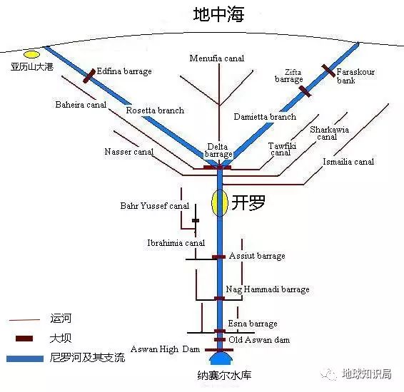 当然,这些都是次要的。在被沙漠围困的埃及,三角洲地区是与外部世界联系最直接也最方便的地区。与之相反,尼罗河越往上游越窄,经济利益也就越小,发展所需耗费随之陡增。虽然在南部的河谷地带最终变宽,但那已经是喀土穆了,埃及无法控制。