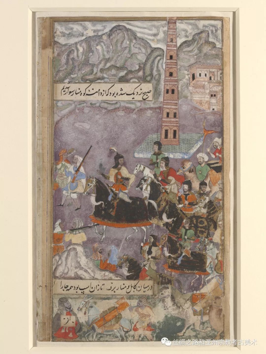 (这幅绘画表现的是1502年帖木儿的巴布尔皇帝到达喀布尔的场景,从这幅画中可以看到贾姆宣礼塔作为背景在兴都库什的丛山峻岭中©WIKI)