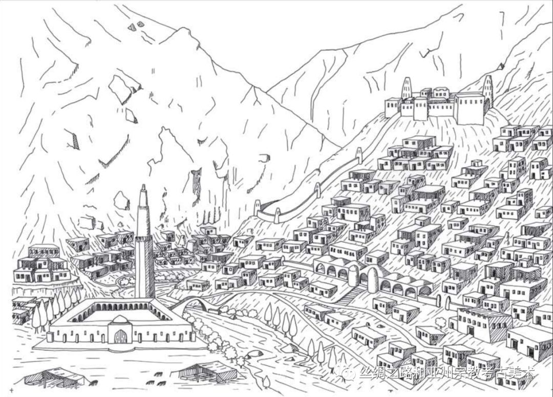 (古尔王朝都城和贾姆宣礼塔想象复原示意图©David Thomas)