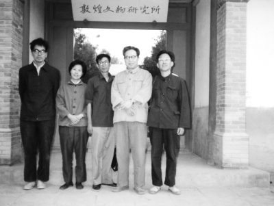 二十世纪八九十年代,宿白先生(右二)在敦煌文物研究所前留影。资料图片