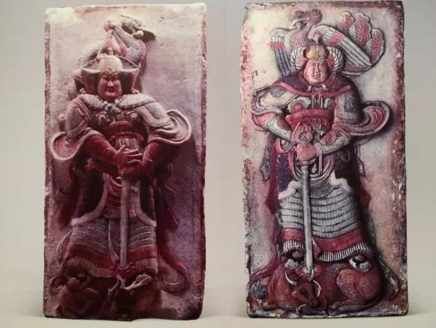 也有人认为,这两件浮雕武士像应是天王俑。天王俑源于佛教的护法神——四大天王。由于天王可以镇妖降魔,所以古人将天王做成俑的形象,放在墓门旁边,认为这样可以保护墓主人的灵魂。