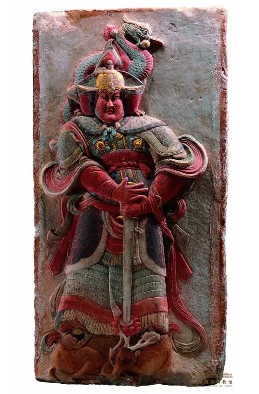 据考证,国家博物馆收藏的这两件武士像最初就立于王处直墓前室甬道的两侧。那么这两块相对而立的浮雕武士像是做什么用的呢?