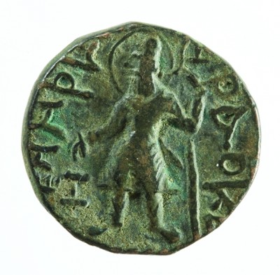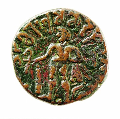 为适应自身和他种信仰的多重表达需要,贵霜王朝在钱币上做出了新的设计,在钱币正面,国王身穿民族服饰,与护佑王权的神权象征祭火坛共处于一个画面中。通常这种“共生互佑”的概念被分置于钱币正面和背面。而钱币的另一面,则常用来表达其他被包容接纳的信仰,比如希腊神、伊朗神、印度教或者佛教神。