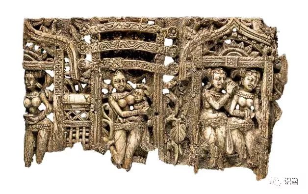 那么这些象牙和骨雕原产地是哪里呢?最常见的观点是它们在印度雕刻好,然后向北运送至贝格拉姆。许多学者尝试将它们与秣菟罗、桑奇、阿玛拉瓦蒂这些不朽的艺术进行系统化的比较。系统化分析虽是有根据的,但在贝格拉姆出土的散件未雕刻未加工的象牙与骨头原料件,暗示着可能在贝格拉姆当地就有象牙与骨雕的加工作坊。有些雕刻品带着手写的佉卢文记号,这印证了一个假设,即工匠在南方深度训练后迁去阿富汗的,并在阿富汗或巴基斯坦雕刻了这些东西。文本的来源同样地证明了工匠们是流动的。