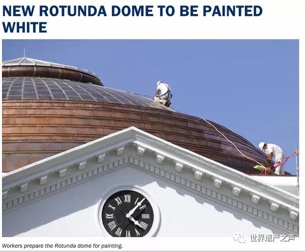 在很多人看来,Rotunda的白色的穹顶,在红墙绿草之间格外美丽,也赋予了这座建筑神圣的美学价值。恐怕有不少人对Rotunda的感情是基于这座亮丽的穹顶。但是,这次维修中居然有人提出:穹顶的颜色要变一变!理由非常直接——