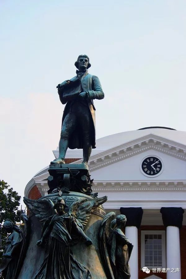 有人说:华盛顿为美国取得了独立,杰斐逊为美国规划了蓝图。那么弗吉尼亚大学便是这张蓝图的微缩实验版本。在弗吉尼亚大学,杰斐逊近乎成为学校无处不在的精神支柱。1895年, Rotunda不幸失火,学生们不顾自身危险,冲入其中,救出了众多珍贵的图书,以及一座巨大的杰斐逊铜像。