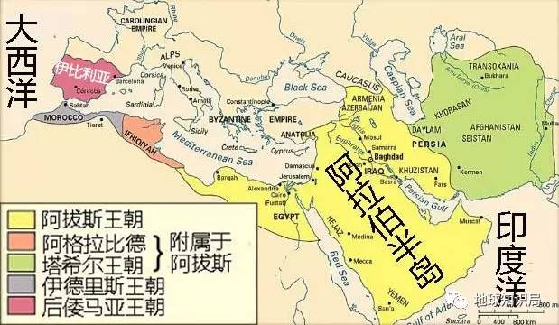 850年的阿拔斯王朝,可见其已经失去了对摩洛哥与安达卢西亚的控制权
