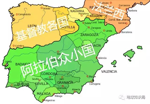 半岛上的基督徒一直想恢复过去的荣光,半岛外的法兰克王国也不甘心做吃瓜群众,在长达三个世纪的时间,两方一同向南进攻,半岛上基督教势力控制的范围不断扩大,莱昂王国、卡斯蒂利亚王国、纳瓦拉王国与阿拉贡王国相继建立并扩张,南方阿拉伯众小国被逐个击破。