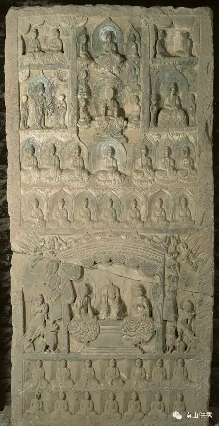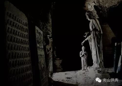 133窟的佛与罗睺罗塑像,是佛教艺术中难得一见的反映佛陀与家人关系的作品。这组雕像中,佛陀手抚唯一爱子罗睺罗的头顶,散发着无比温馨的慈爱,这是一位伟大父亲的慈爱。但作为父亲的佛陀还曾说过,我视一切众生如罗睺罗。这是佛陀的父爱与世人的父爱不同之处。还有精美绝伦的造像碑。