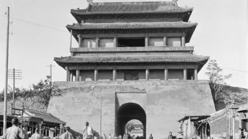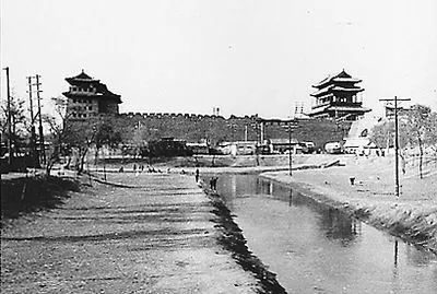 1921年,西直门南面全貌及绕过瓮城向南流的内城西护城河被奥斯伍尔德·喜仁龙摄下。“文革”期间,这座被孔庆普排在拆除序列最末的完整城楼也被误拆。