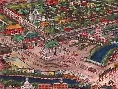 五十年代的《鸟瞰前门》,赵锡山老人手绘图