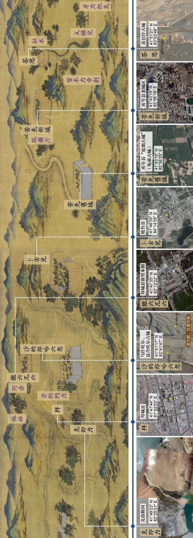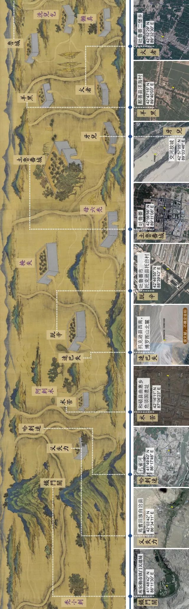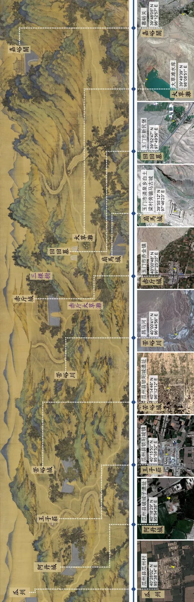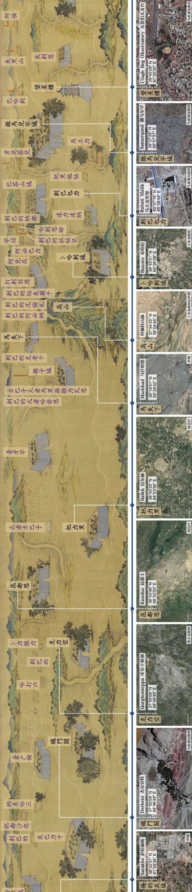 ▲“丝路山水图”部分现代地名及大致路线方向考证示意图