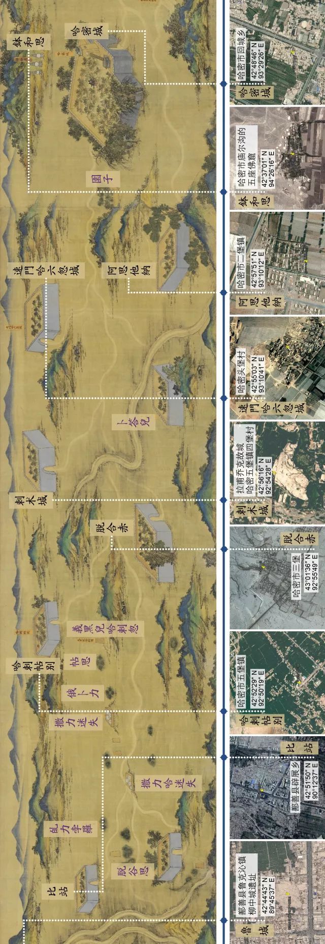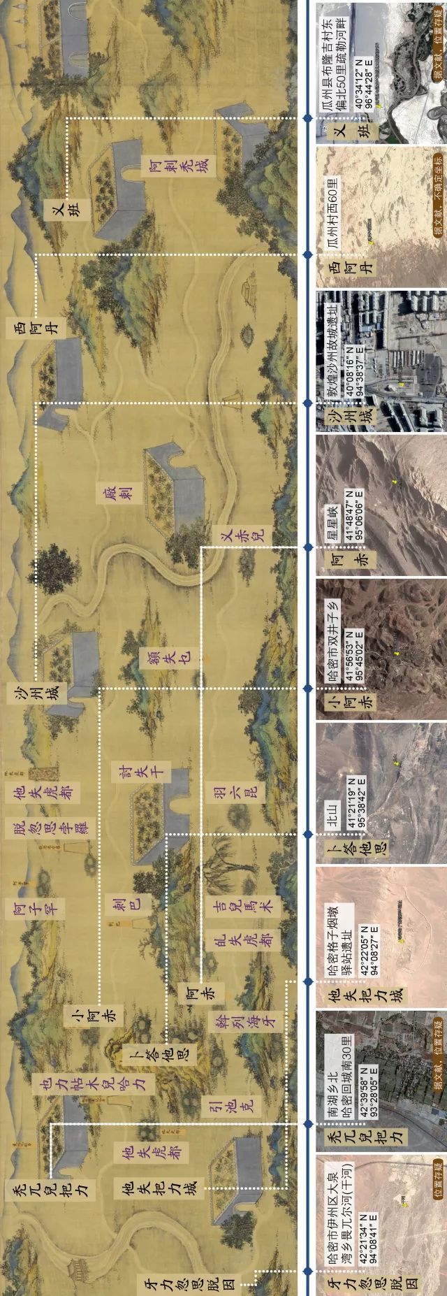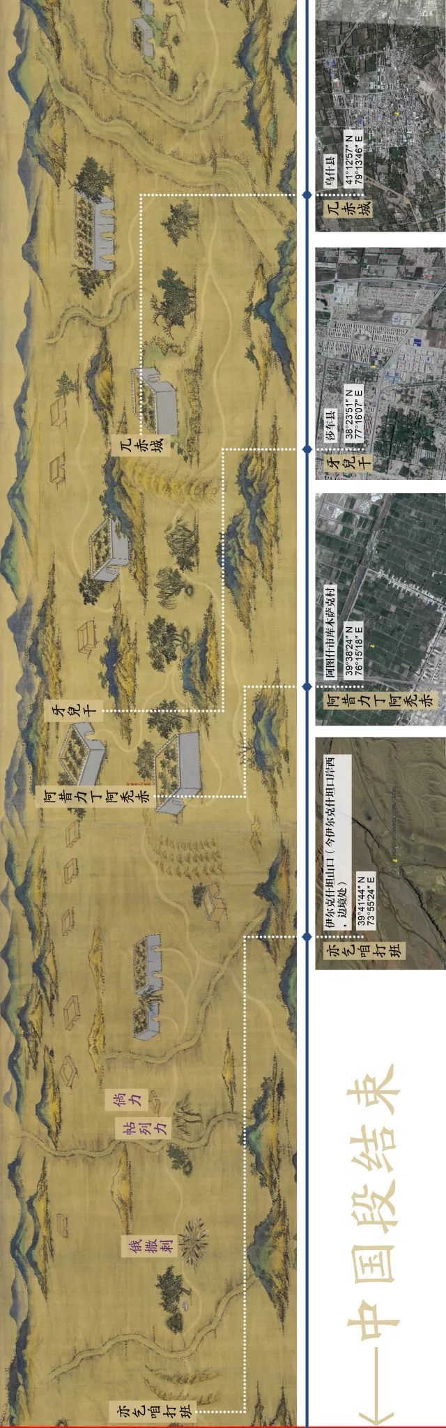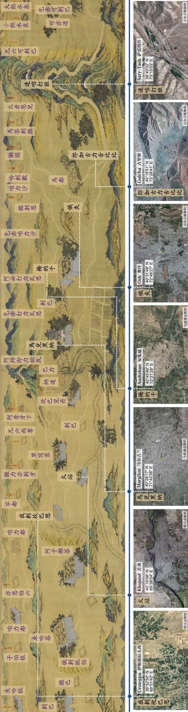 ▲“丝路山水图”部分现代地名及大致路线方向考证示意图