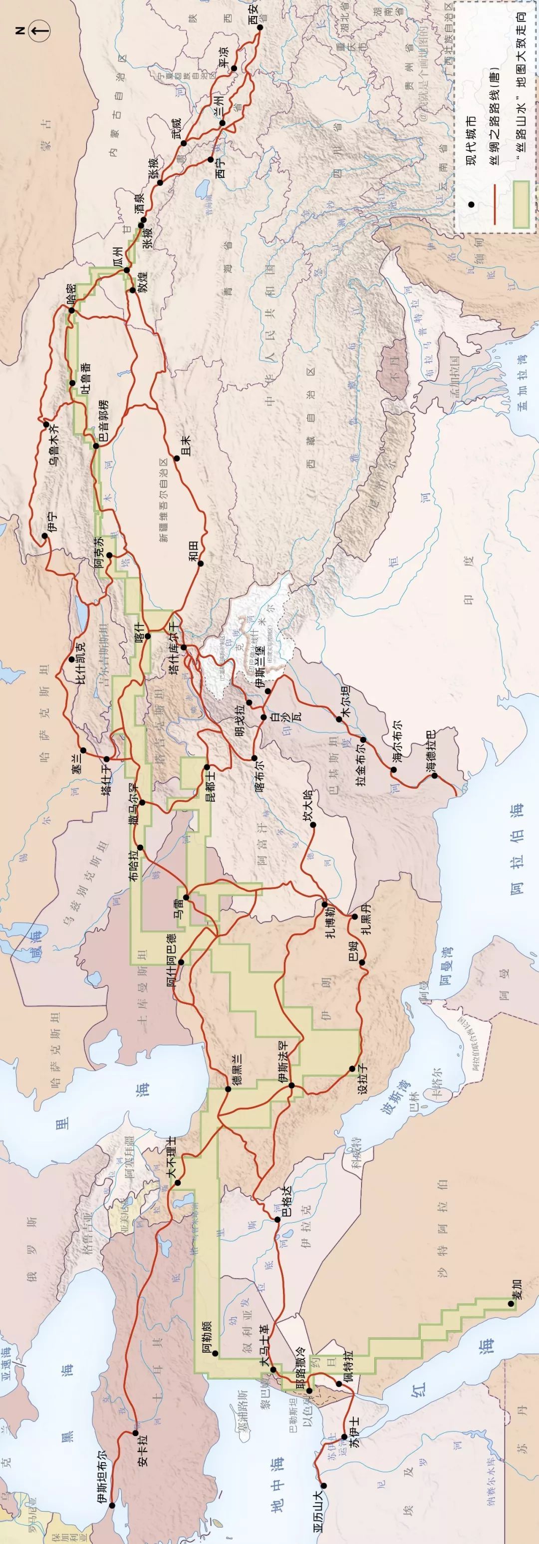 以上,我们用两篇文章做的这幅“丝路山水地图”的考证就告一段落了,它真正的身份可能重要也可能不重要,至少,它激起了大家对丝绸之路追根溯源的兴趣。如今,依然留存在丝路沿线的壮美自然景观,璀璨文明的遗存以及国家发展的战略方向………,都将会是我们时常提到丝绸之路的意义所在。
