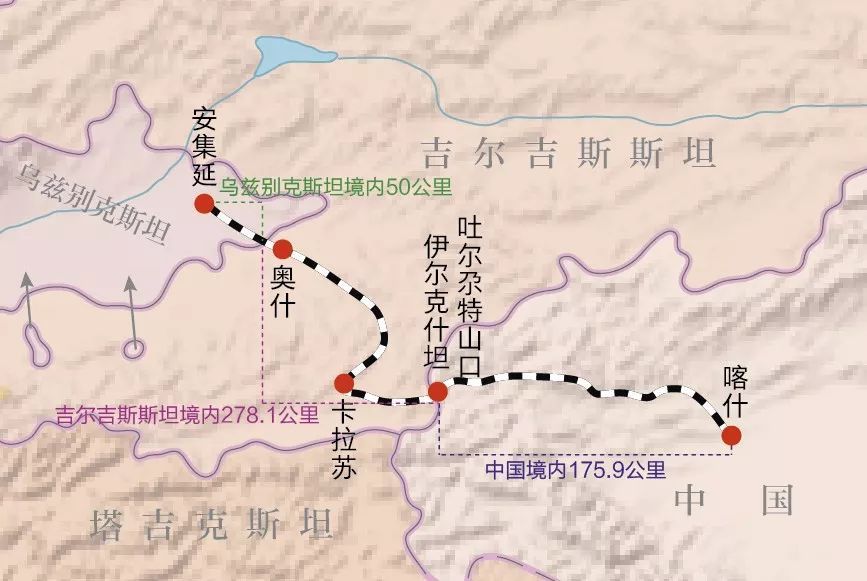 这一战略方向落实到具体的线路上,就是连通喀什与费尔干纳盆地的“中——吉——乌”铁路。一旦这条线路能够修通,也就意味着南疆对外开放的窗口打开了。即使伊朗、阿富汗两国因为受国际、国内环境的影响,暂时不能承担连通欧洲、南亚的节点,仅仅凭借与中亚人口容量最大的“河中地区”沟连,也能让南疆地区摆脱地缘上的封闭性。如果将之与连通哈萨克斯坦、伊犁河谷、准噶尔盆地的支线相连,亦能够在天山南北形成一个连通所有地缘板块闭环,将中亚与西域的经济紧密联系在一起。
