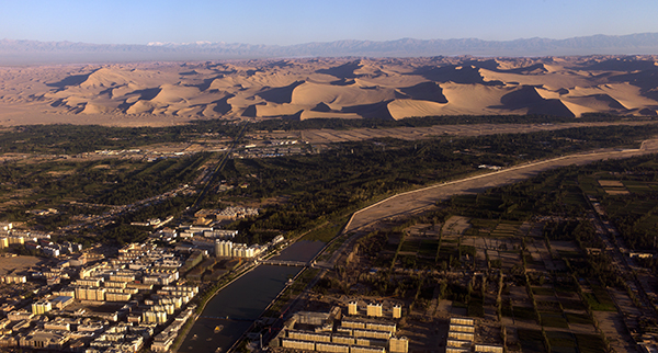 敦煌水源来自两大水系——疏勒河水系与党河水系。对于沙漠戈壁围绕的绿洲城市敦煌而言,水既维系着本地区现实生活的生存空间,也制约着敦煌绿洲的发展。