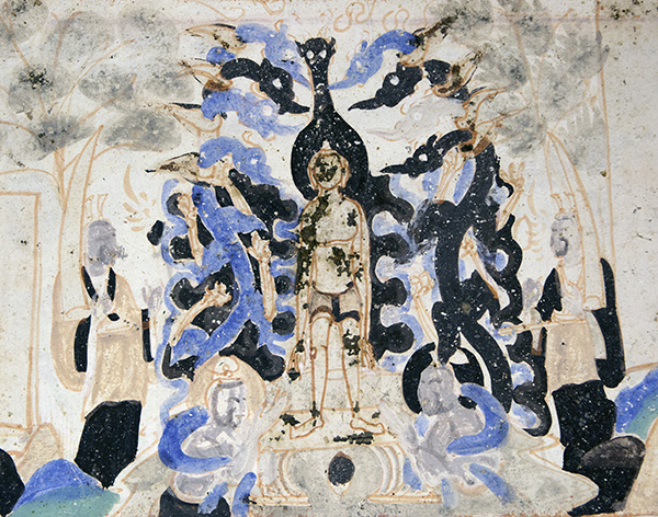 敦煌壁画中出现“水”并不奇怪,因为在佛教的理论中,世界是由地、水、火、风四大元素构成,水代表物质的湿性和流动性,是物质及其流转不可或缺的部分。佛教义理中也常以水的流转不息、易逝难追比喻人生的无常,比如《杂阿含经》中就有“诸比丘,譬如大雨大泡,一起一灭”的记载。