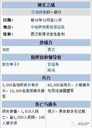 在回答这个问题之前,我们简单介绍一下这场战役。一位名叫陈汤的中国军人以逸待劳,组织抗击匈奴郅支单于的战役。郅支单于野心勃勃,想在亚洲建立王国,奴役中国人,还做出不可饶恕之事——杀了一位汉庭使节。